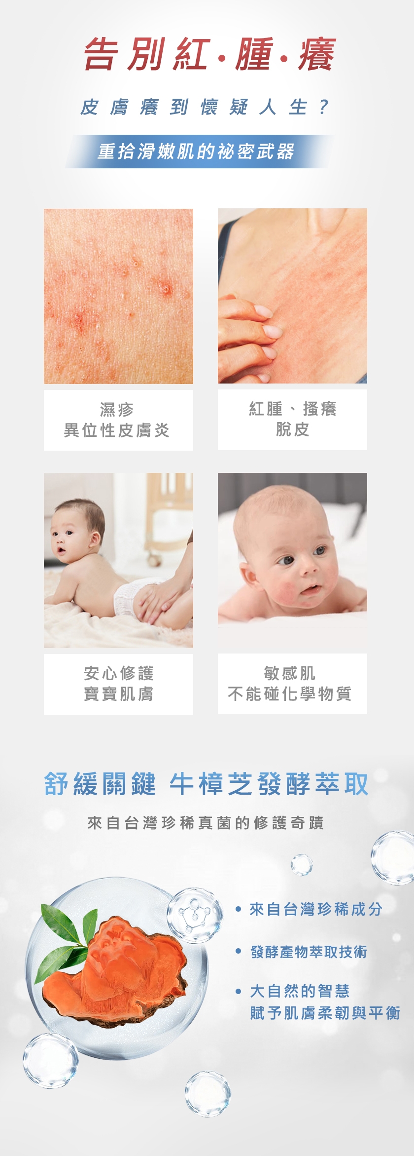 舒緩敏感肌膚產生之紅.腫.乾.癢.濕疹.汗疹